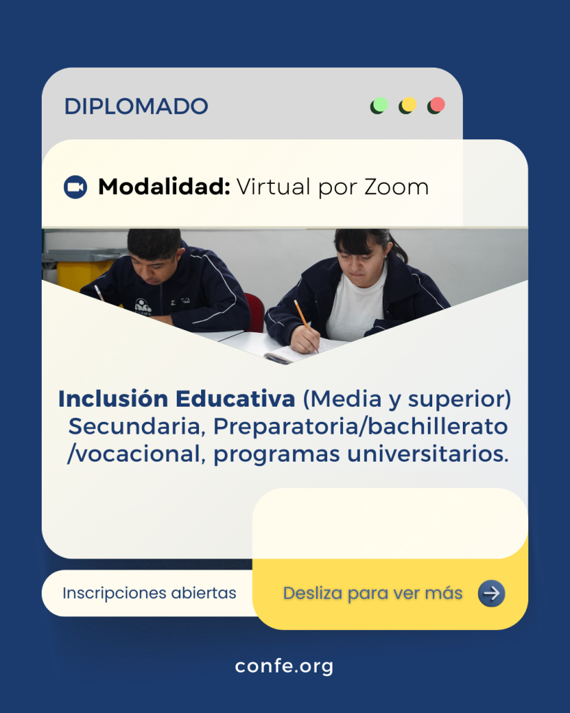 Inclusión Educativa (Media y superior) Secundaria, Preparatoria/bachillerato/vocacional, programas universitarios