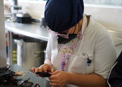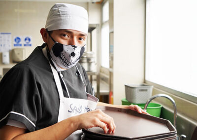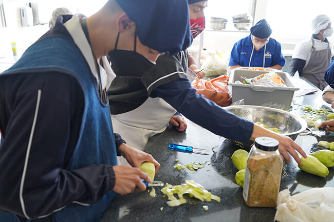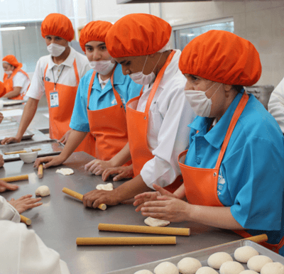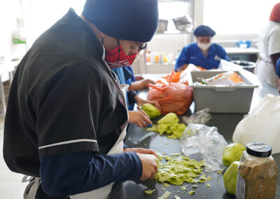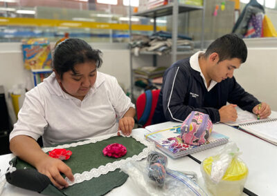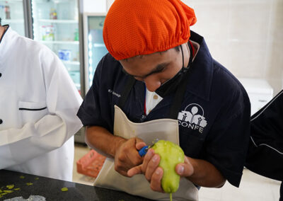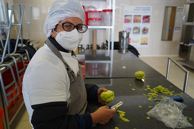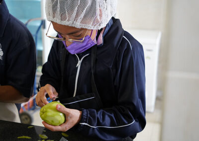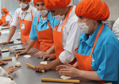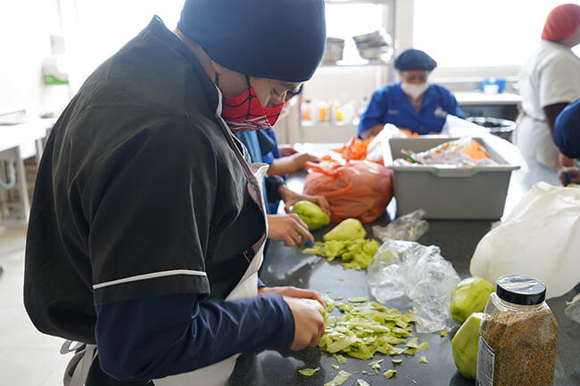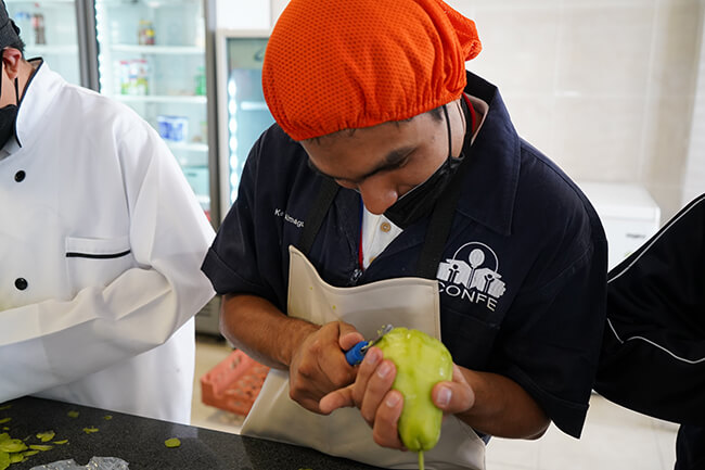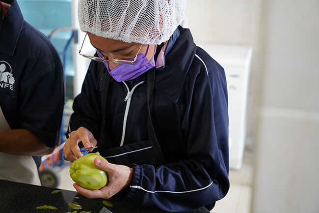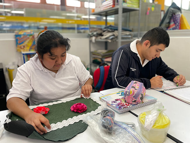Los jóvenes desarrollan habilidades socio adaptativas y se capacitan en talleres formativos, como: panadería, costura, intendencia, cocina y jardinería.